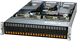 Quad Node, Dual 5th/4th Gen Intel Xeon Scalable processor (Per Node), 2x PCIe Gen5 x16 (LP) Slots (Per Node), 3000W redundant power supply, 24 x 2.5" SATA hot-swappable bays
