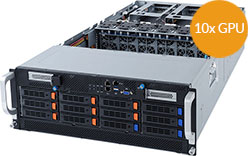 Up to 10 x PCIe GPGPU cards. Dual 10Gb/s LAN ports. AST2500 Graphics & Remote Management controller. Redundant power.