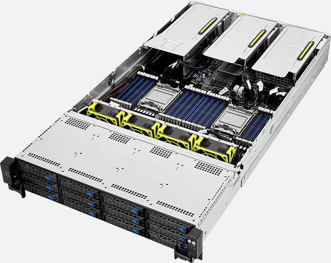 2U dual-socket server powered by 3rd Gen Intel Xeon Scalable processors that supports up to 32 DIMMs, four dual-slot GPUs, eight NVMe, nine PCIe 4.0 slots, OCP 3.0, dual M.2 and ASUS ASMB10-iKVM.
