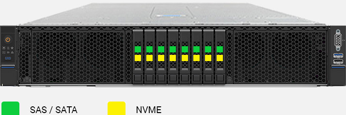 This system can be configured with NVMe drives, which are capable of significantly better performance than SATA and SAS.