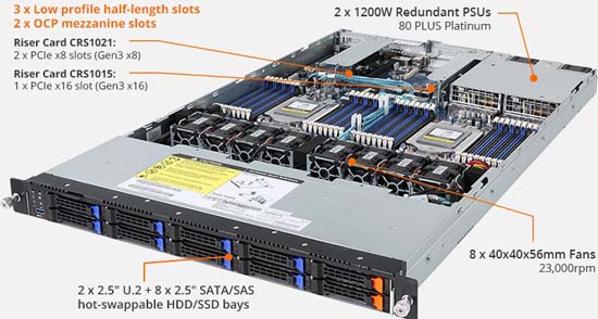 Powered by AMD EPYC 7001 series processors, the Gigabyte R181-Z91 (6NR181Z91MR-00) is very energy efficient. An ideal addition to your data centre.