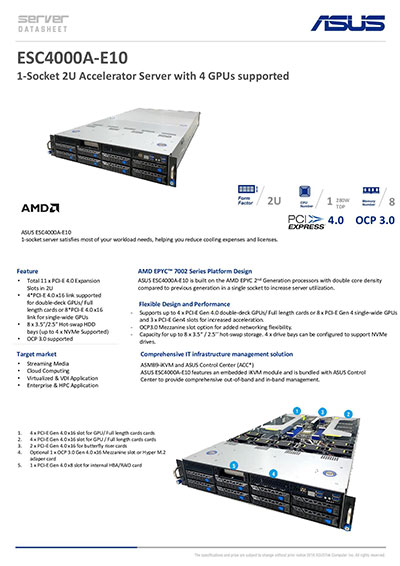 GPU-optimised design allowing 4x double-slot GPUs, high power efficiency with redundant power supply, up to 11x PCIe® 4.0 slots enabling higher bandwidth and enhanced data transfer rates