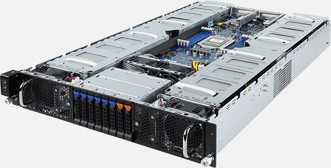Supports up to 8 x double slot GPU cards. Dual 10Gb/s SFP+ LAN ports. Aspeed® AST2500 remote management controller. Redundant power.