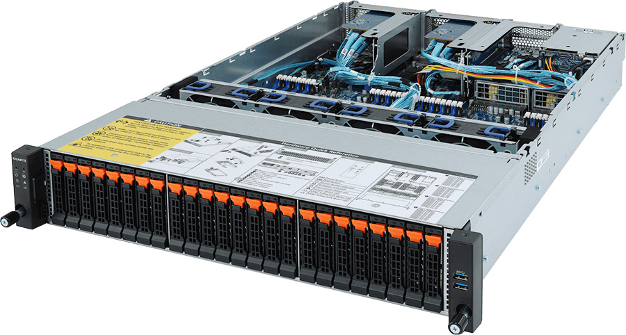The Gigabyte R282-Z92 (6NR282Z92MR-00) can be configured with hot-swap drives, allowing you to remove and replace the drives whilst the system is running with no interruption.