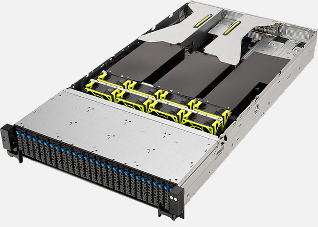 AMD EPYC™ 7003 2U single-socket server that supports up to 16 DIMM, 2 dual-slot GPUs, 24 NVMe, 5 PCIe 4.0 slots, OCP 3.0, M.2 and ASUS ASMB10-iKVM