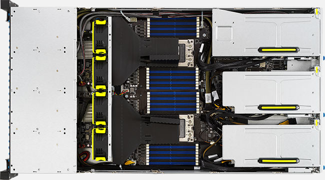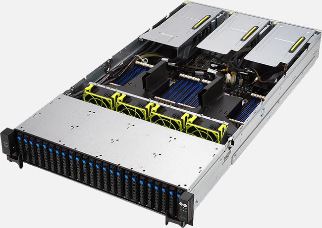 AMD EPYC™ 7003 2U dual-socket server that supports up to 32 DIMM, four dual-slot GPUs, 24 NVMe, nine PCIe 4.0 slots, OCP 3.0, M.2 and ASUS ASMB10-iKVM