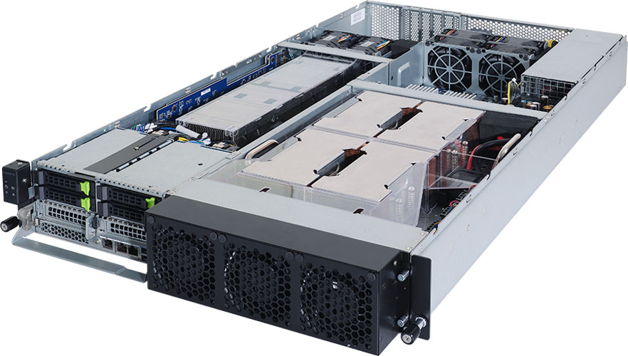 Dual AMD EPYC 7003 Series Processor, Supports 4x NVIDIA HGX™ A100 80GB with 4 x SXM4 GPUs, Redundant 3000W Power Supply, 4x 2.5" NVMe/SATA/SAS hot-swappable drive bays.