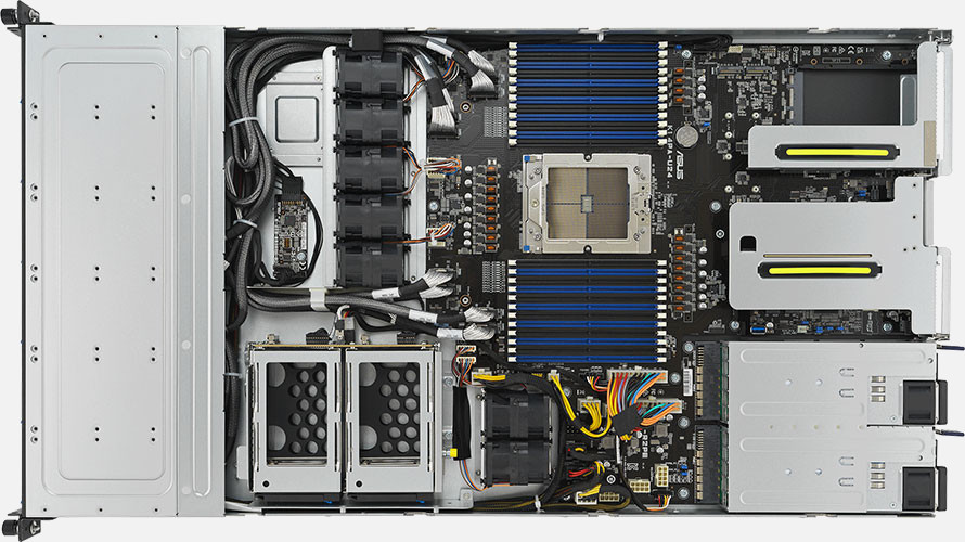 Single AMD EPYC 9004 Series Processors, Supports up to 2x single slot GPU cards, Dual 800W redundant power supply, 16x 2.5" NVMe/SATA/SAS hot-swappable drive bays.