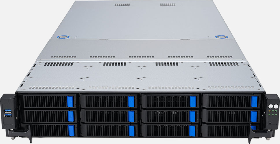 Single AMD EPYC 9004 Series Processor, Supports up to 2x double slot GPU cards, Dual 1200W redundant power supply, 12x 3.5"/2.5" NVMe/SATA/SAS hot-swappable drive bays.