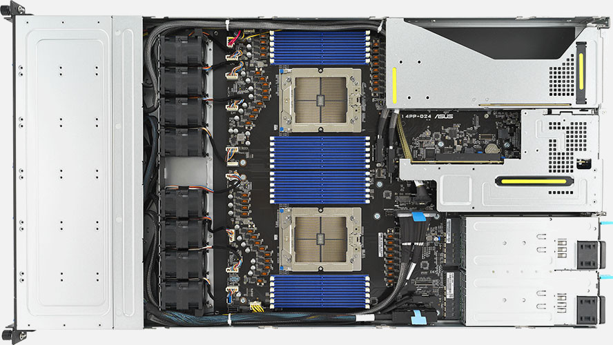Dual AMD EPYC 9004 Series Processors, Supports up to 1x double slot GPU cards, Dual 2000W redundant power supply, 12x 2.5" NVMe/SATA/SAS hot-swappable drive bays.