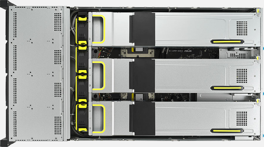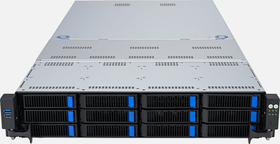Dual AMD EPYC 9004 Series Processors, Supports up to 4x double slot GPU cards, Dual 2000W redundant power supply, 4x 3.5"/2.5" NVMe/SAS, 4x 3.5"/2.5" NVMe/SATA/SAS & 4x 3.5"/2.5" SATA/SAS hot-swappable drive bays.