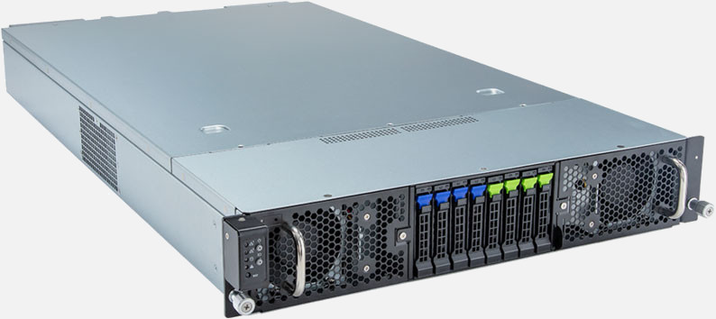 This server supports SATA drives, which are very cost-effective and adept at dealing with mass storage.