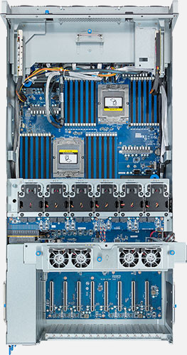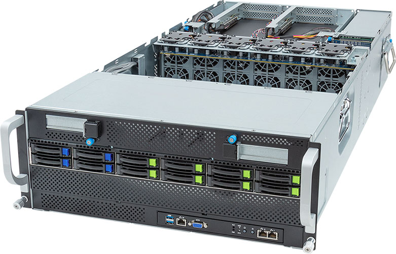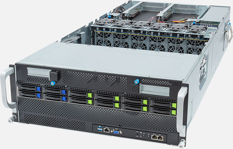 Dual AMD EPYC 9004 series processors, Supports up to 10x double slot GPU cards, 2x 1Gb/s BASE-T LAN ports (Intel® I350-AM2) , 8x 2.5" NVMe/SATA/SAS and 4x 2.5" SATA/SAS hot-swappable drive bays.