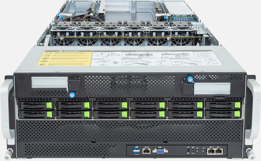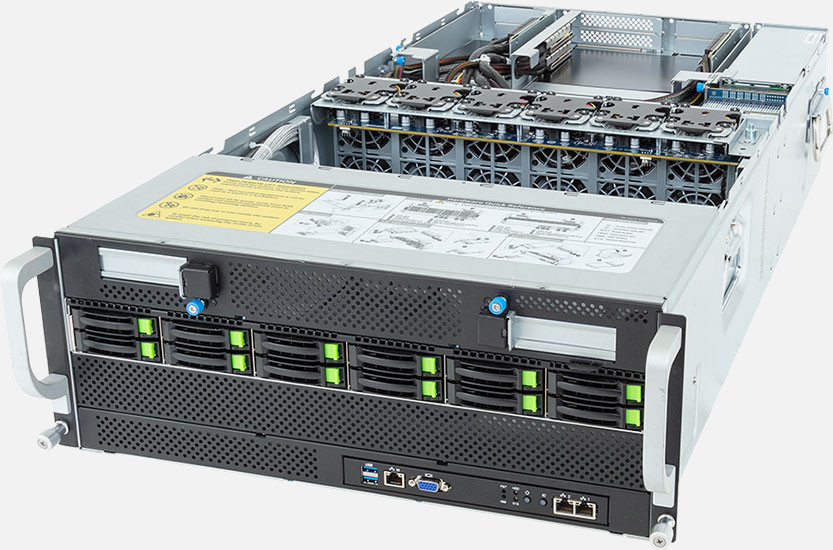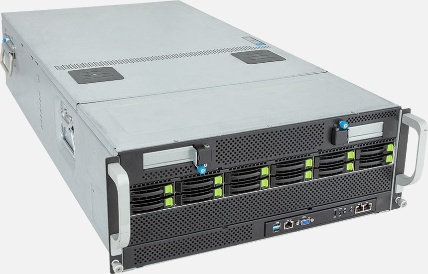 Dual AMD EPYC 9004 series processors, Optimized for 8x NVIDIA OVX™ L40S GPU cards, 2x 1Gb/s BASE-T LAN ports (Intel® I350-AM2) , 12x 2.5" NVMe/SATA/SAS hot-swappable drive bays.