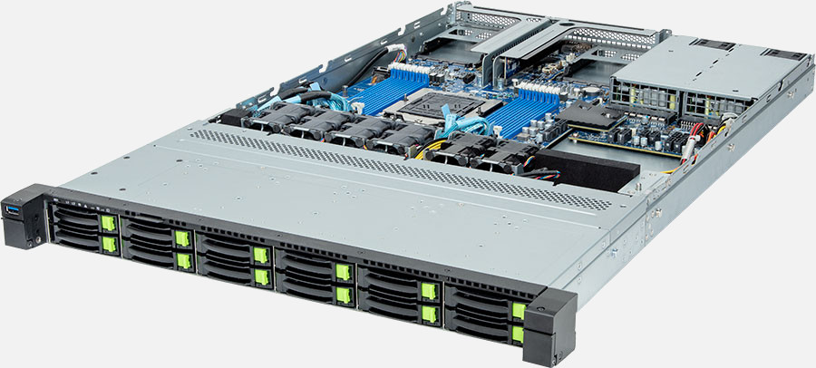 The Gigabyte R163-Z32 (6NR163Z32DR000AAC1) can be configured with hot-swap drives, allowing you to remove and replace the drives whilst the system is running with no interruption.