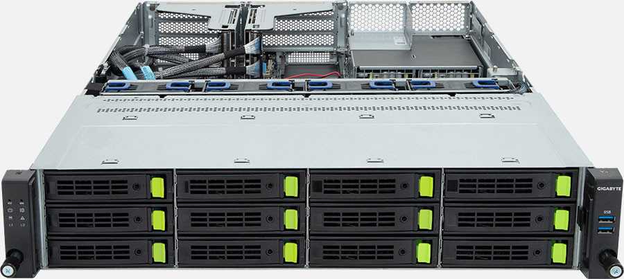 The Gigabyte R263-Z30 (6NR263Z30DR000AAC1) can be configured with hot-swap drives, allowing you to remove and replace the drives whilst the system is running with no interruption.