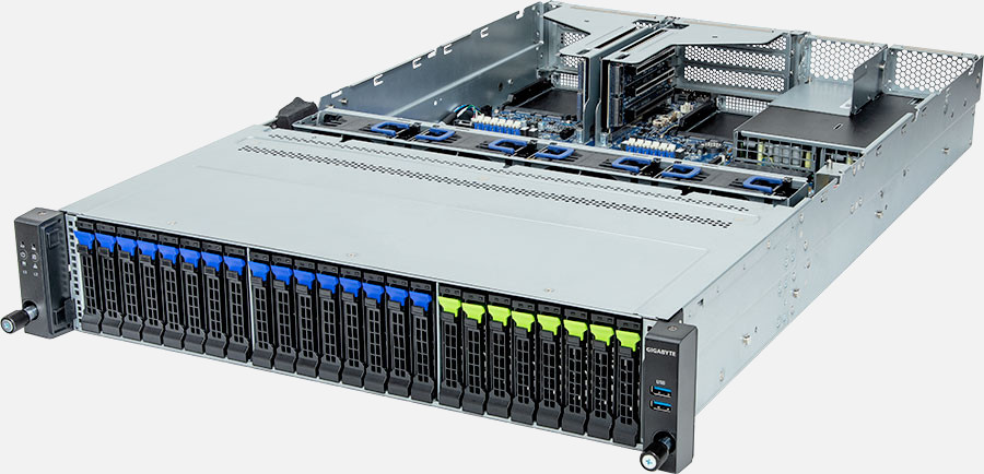 The Gigabyte R263-Z32 (6NR263Z32DR000AAC1) can be configured with hot-swap drives, allowing you to remove and replace the drives whilst the system is running with no interruption.