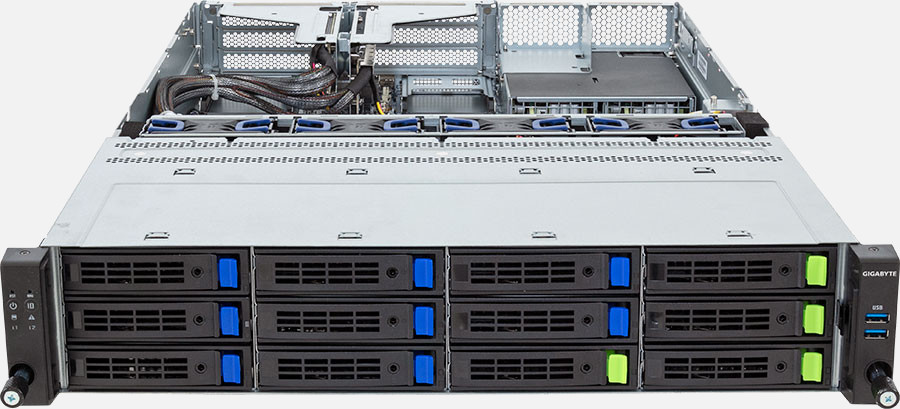 The Gigabyte R263-Z34 (6NR263Z34DR000AAC1) can be configured with hot-swap drives, allowing you to remove and replace the drives whilst the system is running with no interruption.