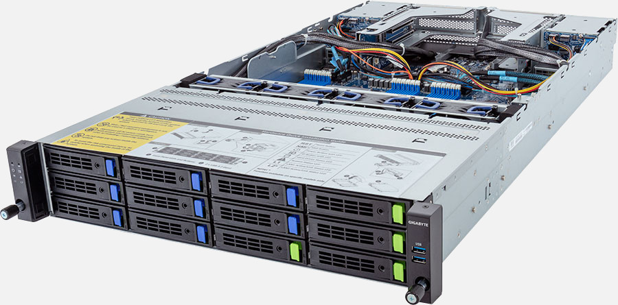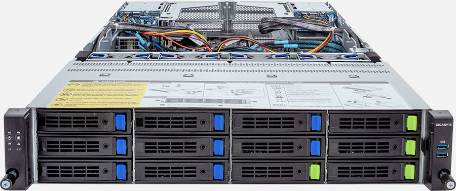 The Gigabyte R283-Z90 (6NR283Z90DR000AAD2) can be configured with hot-swap drives, allowing you to remove and replace the drives whilst the system is running with no interruption.