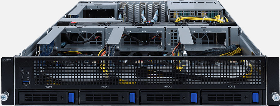 Single Ampere® Altra series processors, 4x FHFL PCIe Gen4 x16 slots for GPUs , 2x 1Gb/s LAN ports (Intel® I350-AM2), 1600W redundant power supply, 4x 3.5"/2.5" SATA hot-swappable drive bays.