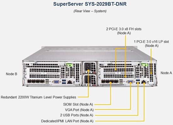 The Supermicro SuperServer 2029BT-DNR | SYS-2029BT-DNR supports the Intel Intel Xeon Scalable Processors 2nd Generation family in a high-density 2U form-factor. These SuperServers are ideal for network infrastructure, front-end enterprise, and minimal-downtime cluster server systems.