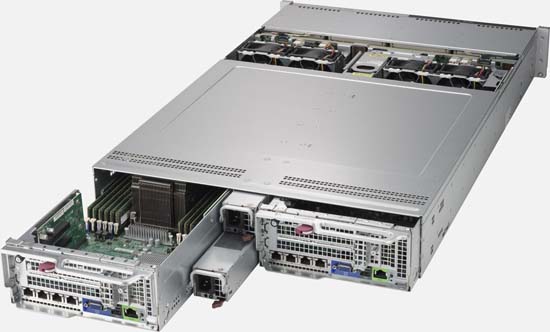 This 2U Twin delivers an innovative architecture where devices can be hot-swapped to allow for easier maintenance, to reduce/eliminate down time and to save space and energy.