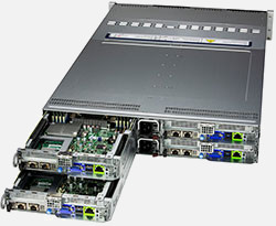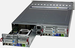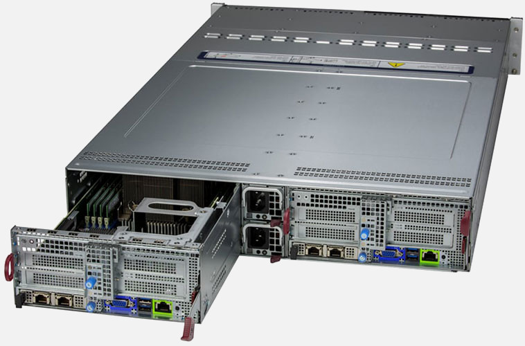 This 2U Twin delivers an innovative architecture where devices can be hot-swapped to allow for easier maintenance, to reduce/eliminate down time and to save space and energy.
