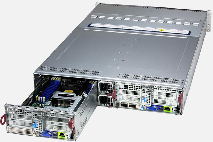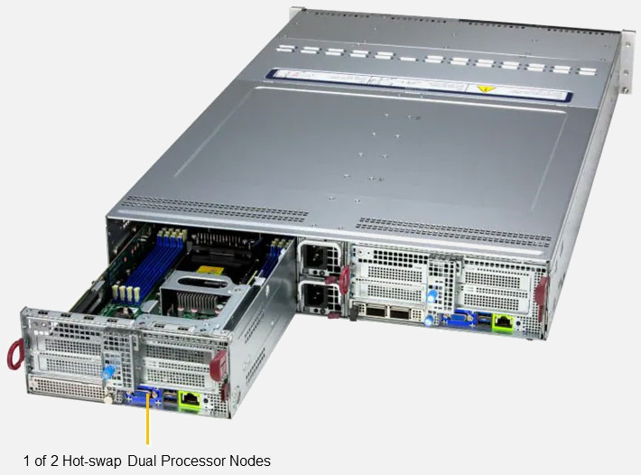 This 2U Twin delivers an innovative architecture where devices can be hot-swapped to allow for easier maintenance, to reduce/eliminate down time and to save space and energy.