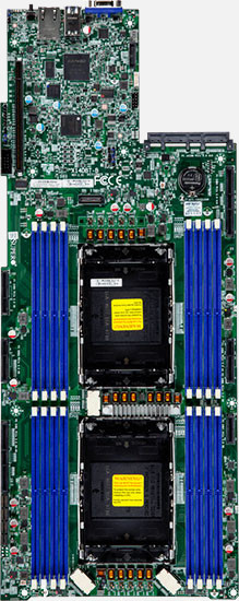 Dual node, Dual Intel Xeon 6 6700 series Processor per node. Ideal for Hyperconverged Infrastructure & Scale-Out Object Storage. 2x PCIe 5.0 x16 LP slot & 1x PCIe 5.0 x8 LP slot per node. 2200W Redundant Power Supply, 6x 2.5" NVMe Hot swap drive bays per node.
