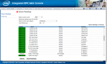 Remote server management is present courtesy of Intel's RMM4 Lite hardware key, which enhances the integrated BMC and activates the dedicated Gigabit port. Its web console doesn't come close to HPE's outstanding iLO5 or Dell's superlative iDRAC9 management consoles for features. but it does provide sensor views of critical components and issues email alerts if values exceed their predefined thresholds.