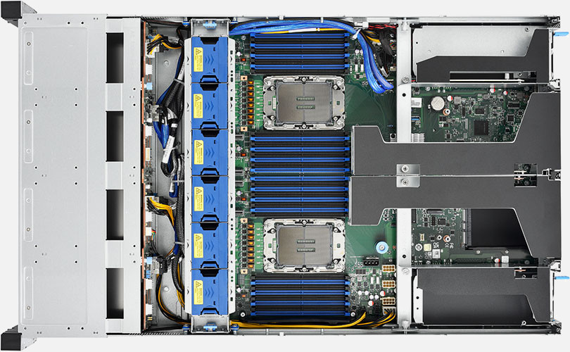 2U Dual 4th Gen Xeon CPU, 32 DIMM HPC / VM Server, 2x FH/HL PCIe Gen 5.0 x16 slots. 8x SATA/NVMe hot swap drive bays, 1600W Redundant power supply.