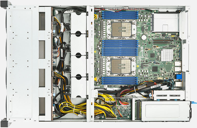 This server supports SATA drives, which are very cost-effective and adept at dealing with mass storage.