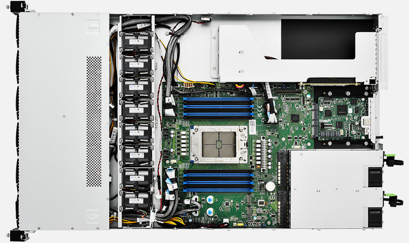 1U1S Cloud Server, hybrid NVMe/SATA BP, 12 SFF. 1x FHFL & 1x FH/HL PCIe Gen 5.0 x16 slots. 12x NVMe hot swap drive bays, 1300W Redundant power supply.
