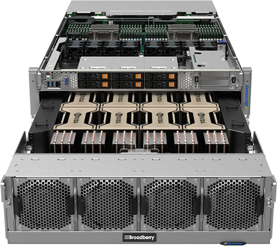 Ready for the most demanding enterprise applications, the Broadberry CyberServe EPYC EP2-4124GO-NART GPU Server can be configured with up to 32 DDR4 ECC Registered memory modules.