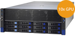 Supports up to 8x GPU, 10x 2.5" SATA and 4x NVMe hot-swap drive bays