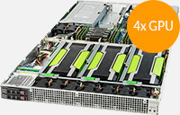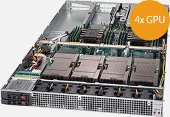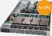 Up to 4x GPUs in 1U, Supports Active/Passive GPUs, 2x 10GBase-T LAN ports via Intel X540, 4 PCI-E 3.0 x16 (FHFL), 1 PCI-E 3.0 x16 (LP) and 1 PCI-E 3.0 x8 (LP)