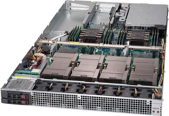 This system is capable of supporting up to 12 DIMMS per CPU. That’s a significant advancement on the previous limit, which was 9 DIMMS per CPU.