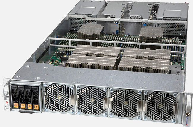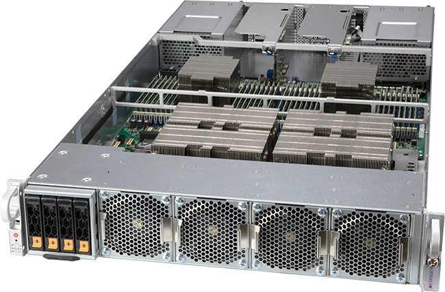 High Density 2U System with NVIDIA® HGX™ A100 4-GPU, Supports 4x A100 40GB SXM4 GPUs, Direct Connect PCI-E Gen4 Platform with NVIDIA® NVLink™, IPMI 2.0 + KVM with Dedicated 10G LAN