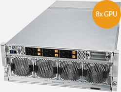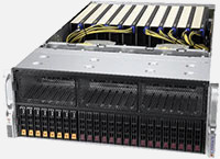 Ideal for HPC and AI/Deep Learning Training. 10x PCI-E Gen 4.0 X16 LP slots. 2x M.2 NVMe and SATA. 4x 2200W redundant Titanium level power supplies.