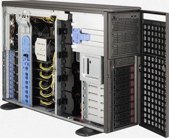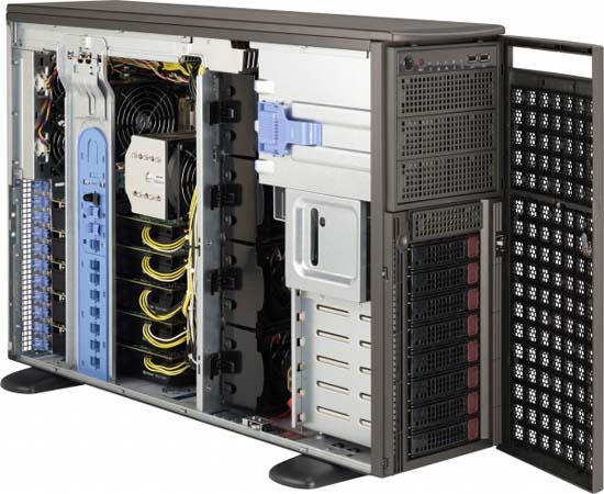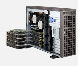The Supermicro GPU SuperWorkstation 7047GR-TRF-FC475 | SYS-7047GR-TRF-FC475 features hot-swap hard drives, giving you more flexibility and allowing you to remove drives without having to shut down the system.