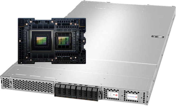 The NVIDIA Grace Hopper™ architecture combines the innovative power of the NVIDIA Hopper™ GPU and the flexibility of the NVIDIA Grace™ CPU into one advanced superchip. This integration is facilitated by the NVIDIA® NVLink® Chip-2-Chip (C2C) interconnect, ensuring high-bandwidth and memory coherence between the two components. This unified architecture maximises performance and efficiency, enabling seamless collaboration between GPU and CPU for a wide range of computing tasks.
