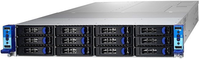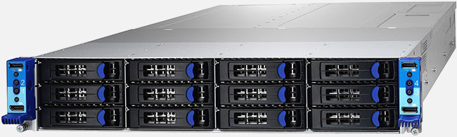 2U4N 2S 12-LFF SATA HCI Server. 64 DIMM slots, 16 per sled. 1 HH/HL PCIe x16 + 1 HH/HL x8 slots per sled.