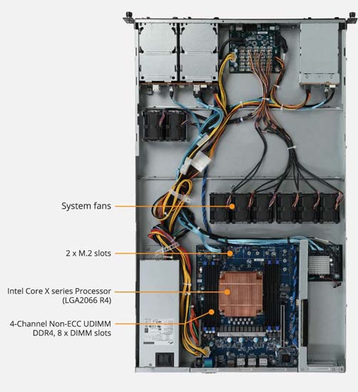 2x U.2 and 4x SATA/SAS 2.5" hot-swappable HDD/SSD bays, 2x PCIe Gen3 low profile expansion slots, dual 1Gb/s LAN ports (Intel® I350-AM2)