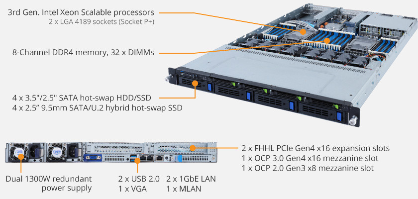 3rd Gen. Intel® Xeon® Scalable DP Server System - 1U 8-Bay Gen4 NVMe. Dual 1Gb/s LAN, Redundant Power Supply. Ideal for Networking.