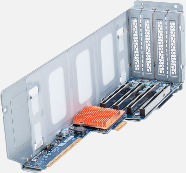 This server supports SATA drives, which are very cost-effective and adept at dealing with mass storage.