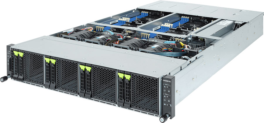 The Gigabyte H263-S64 (6NH263S64DR000ABN1) can be configured with hot-swap drives, allowing you to remove and replace the drives whilst the system is running with no interruption.