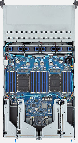 Dual 4th Gen Intel Xeon Scalable Processors, 4x FHHL PCIe Gen5 x16 slots & 4x LP PCIe Gen5 x8 slots, 2x 1Gb/s LAN ports (Intel® I350-AM2), Dual 2000W Redundant PSU, 8x 2.5" NVMe & 16x 2.5" SATA/SAS hot-swappable drive bays.