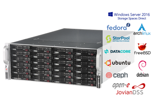 Broadberry SDS servers feature full compatibility with all major server operating systems, including the likes of Open-E DSS Jovian, Windows Storage Spaces Direct, Nexenta, FreeNAS, OSNexus and many more. You will have the full range of options available to your business.