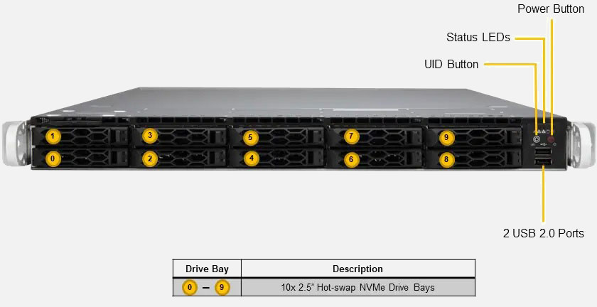 The Supermicro MegaDC Server 110M-NR | ARS-110M-NR features hot-swap hard drives, giving you more flexibility and allowing you to remove drives without having to shut down the system.