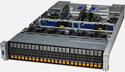 Supports 4x 4th Gen Xeon Scalable Processors, Ideal for AI, In-Memory Database, Scientific Virtualisation, ERP, CRM and HCI. Redundant 1600W Power Supply, 24x 2.5" hot-swap NVMe/SATA /SAS drive bays